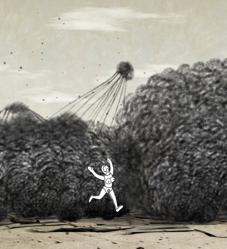 Superbarbara Saving the World is a hand drawn animation reflecting on recurrent problems in the world that are never solved. Different 'episodes' in the animation refer to different problems - each is instantly and universally recognizable not only because they are found everywhere, but because everywhere there is the same frustration for anyone who attempts to solve them.